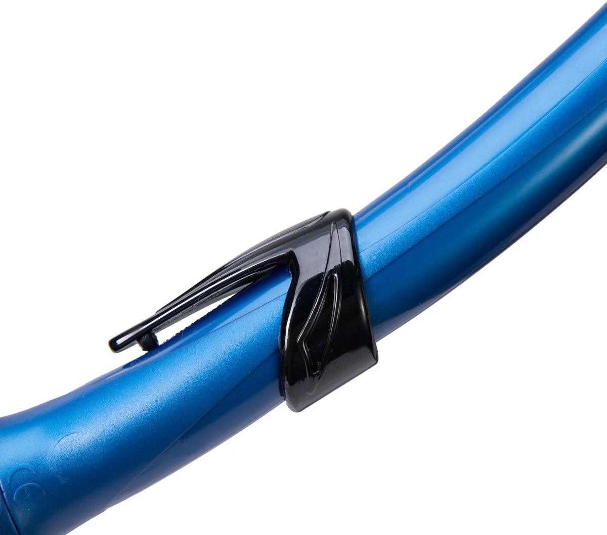 the head while maintaining ease of breathing on the surface. When diving, the mouthpiece tucks neatly under the chin for the ultimate in hydrodynamics.