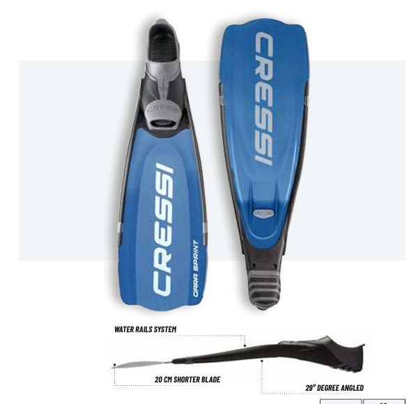 • Extremely thin and light blade in compound made of elastomerized technopolymers developed by Cressi with different thicknesses